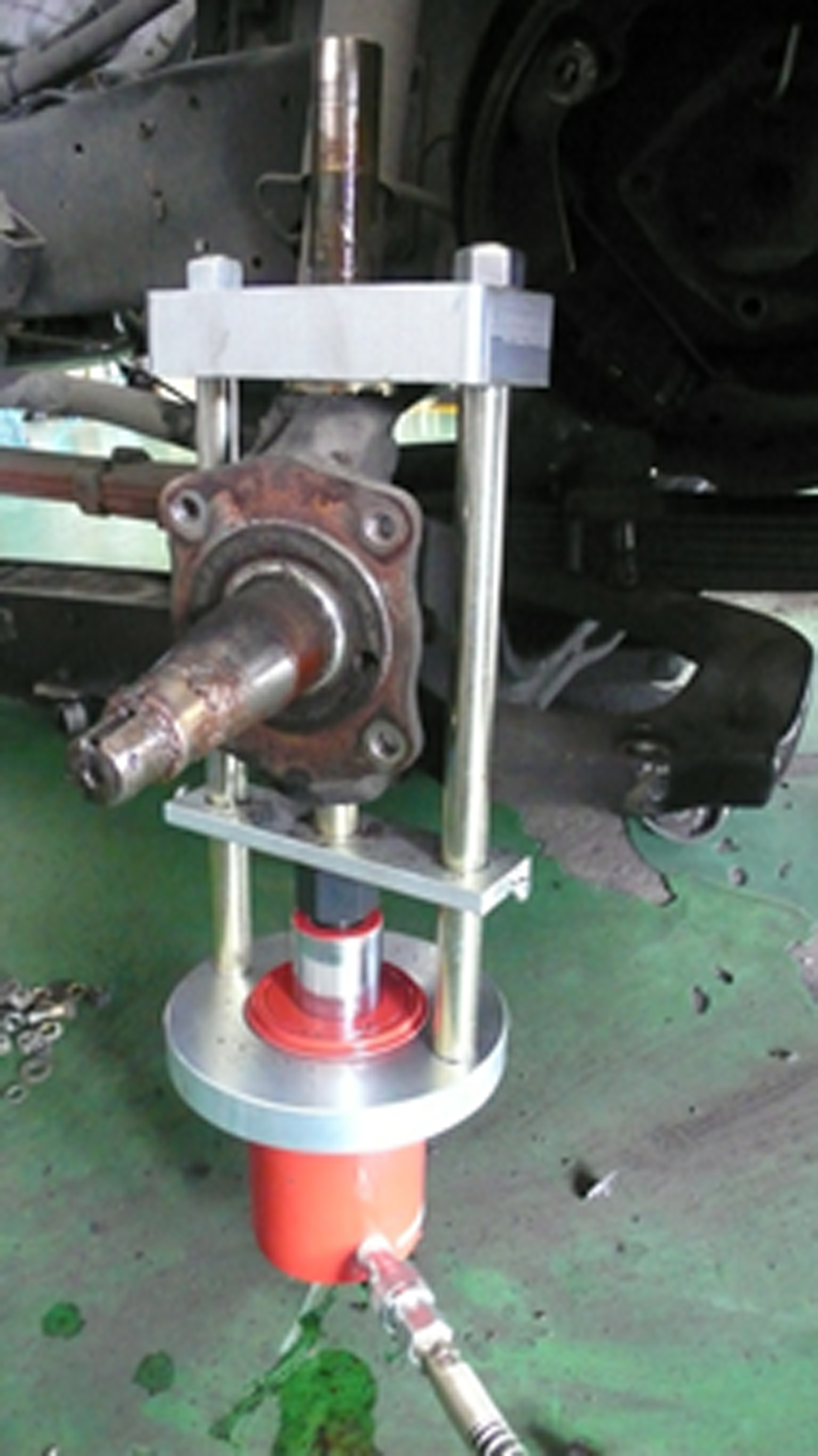 - The tool delivers 20 tons of hydraulic force to push out stubborn king pins on large trucks with king pin